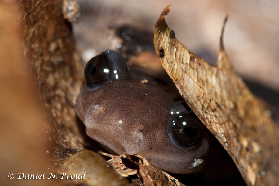 The parrot snake shown in the first two images below, Leptophis ahaetulla (Colubridae), had just found itself a hearty meal. Despite having obviously lost this battle, the frog did not give up the fight so easily, as it kicked and squirmed until the very end. If you look at the expanded body of the snake you can see just how large this frog was – the snake was more than 4 feet in total length. Notice that the skin stretches as the snake swallows the frog – the blue coloration is the skin beneath the green scales.