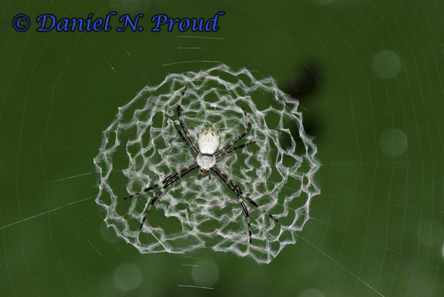 Argiope savignyi at rest in the center of the stabilimentum, a web decoration, La Selva Biological Station, Costa Rica
