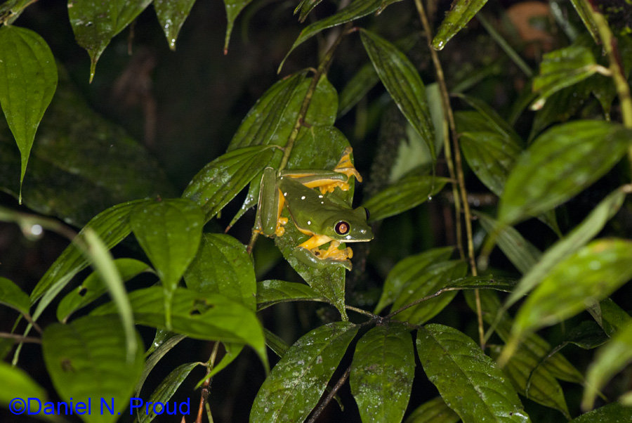 A rare and critically endangered species, Duellmanohyla uranochroa, is also known as the red-eyed stream frog. Las Brisas Nature Reserve, Costa Rica.